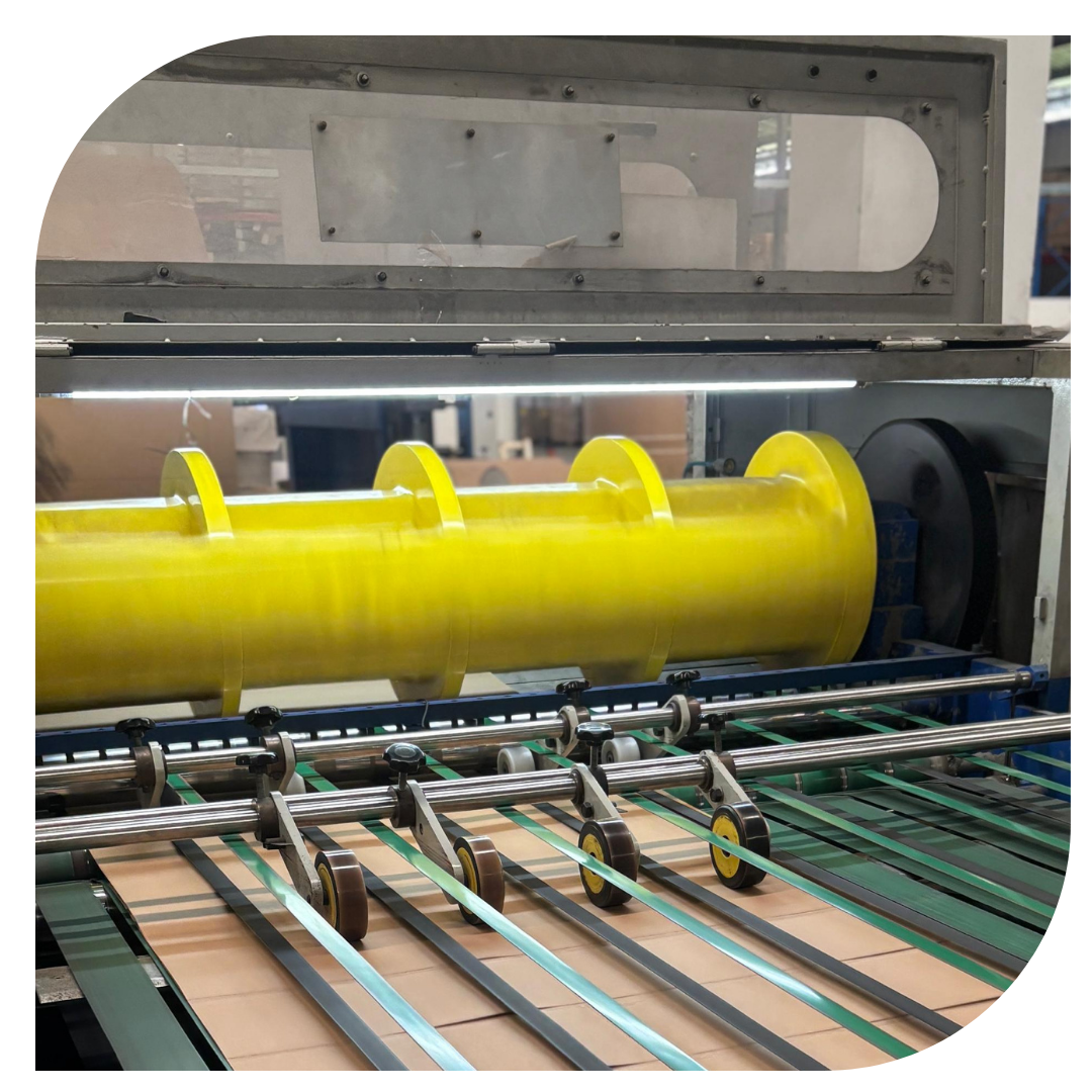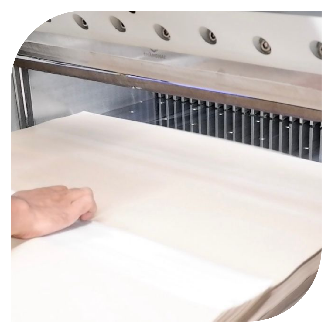 Kami menambahkan Divisi Converting Roll to Sheet untuk memperlengkap variasi dan fleksibilitas ukuran kertas yang dibutuhkan customer. Penggunaan mesin ini menghasilkan potongan yang akurat. Mesin potong yang kami gunakan merupakan alat untuk memotong kertas roll menjadi ukuran sheet.Pemotongan ini dilakukan untuk meminimalisir waste cetak customer yang dihasilkan jika kebutuhan kertas customer tidak sesuai dengan ukuran sheets yang tersedia